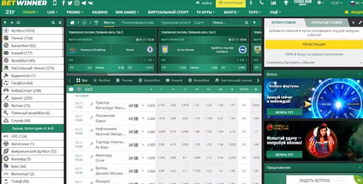 Официальный сайт Betwinner выполнен в приятном зелено-желтом стиле, а все разделы переведены на русский язык. Вас ждут: